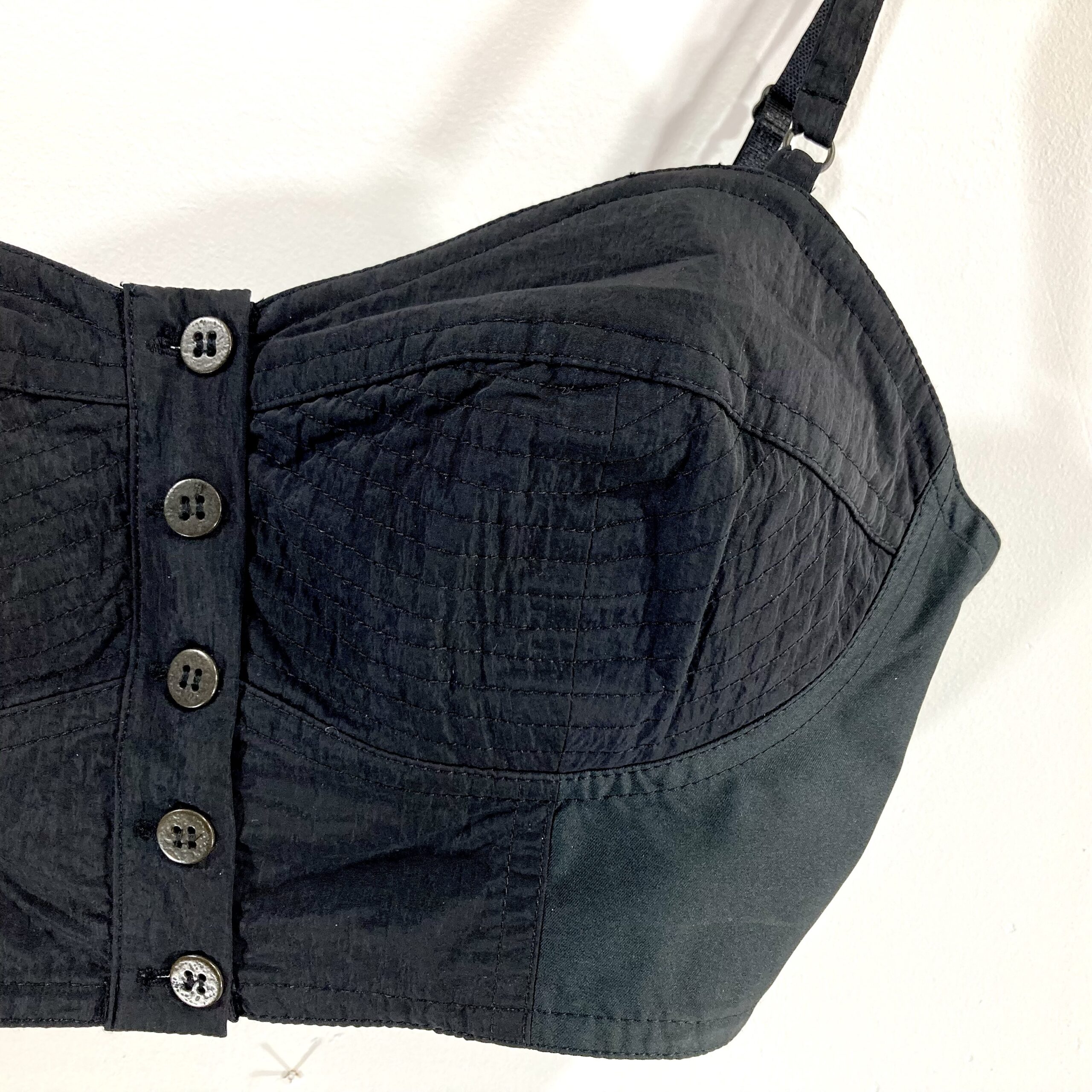 Black Bralette Top by All Saints, in a quality black fabric. The Top features a row of functional buttons on the front and elastic on the back for a comfortable fit.