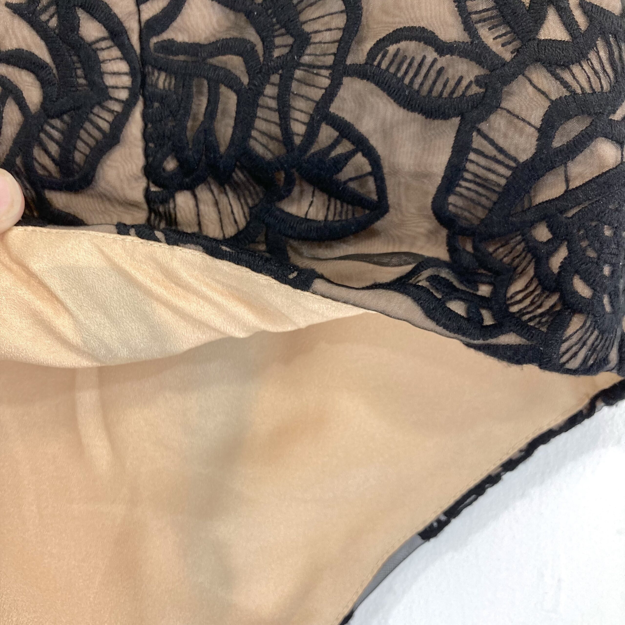Eye-catching embroidered overlay shorts by Stylestalker in a nude fabric. The shorts feature a sheer black Embordered floral fabric overlayed on a champagne pink (nude) base. these are figure hugging short shorts.