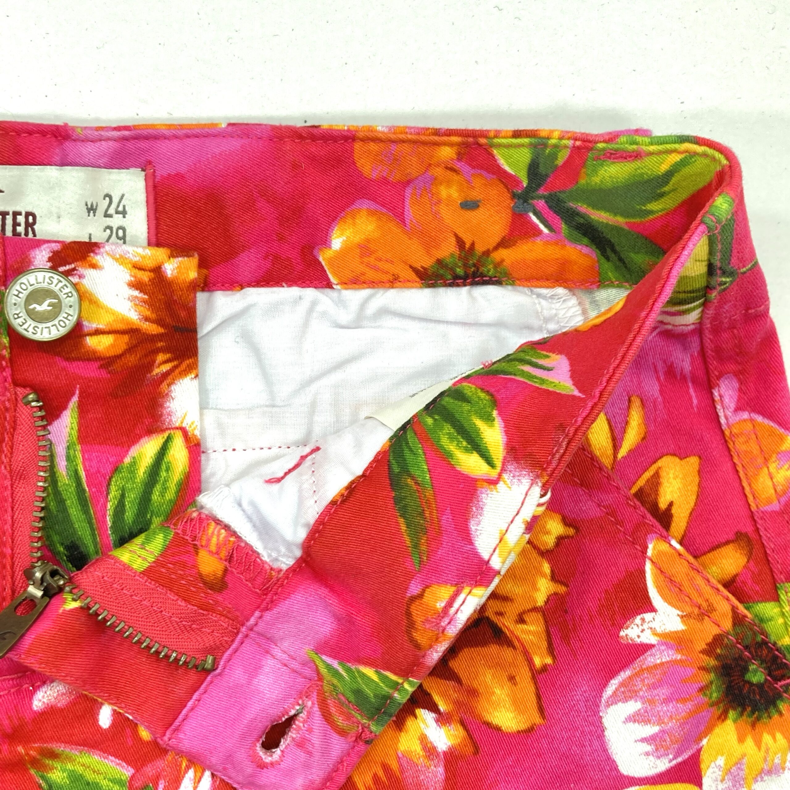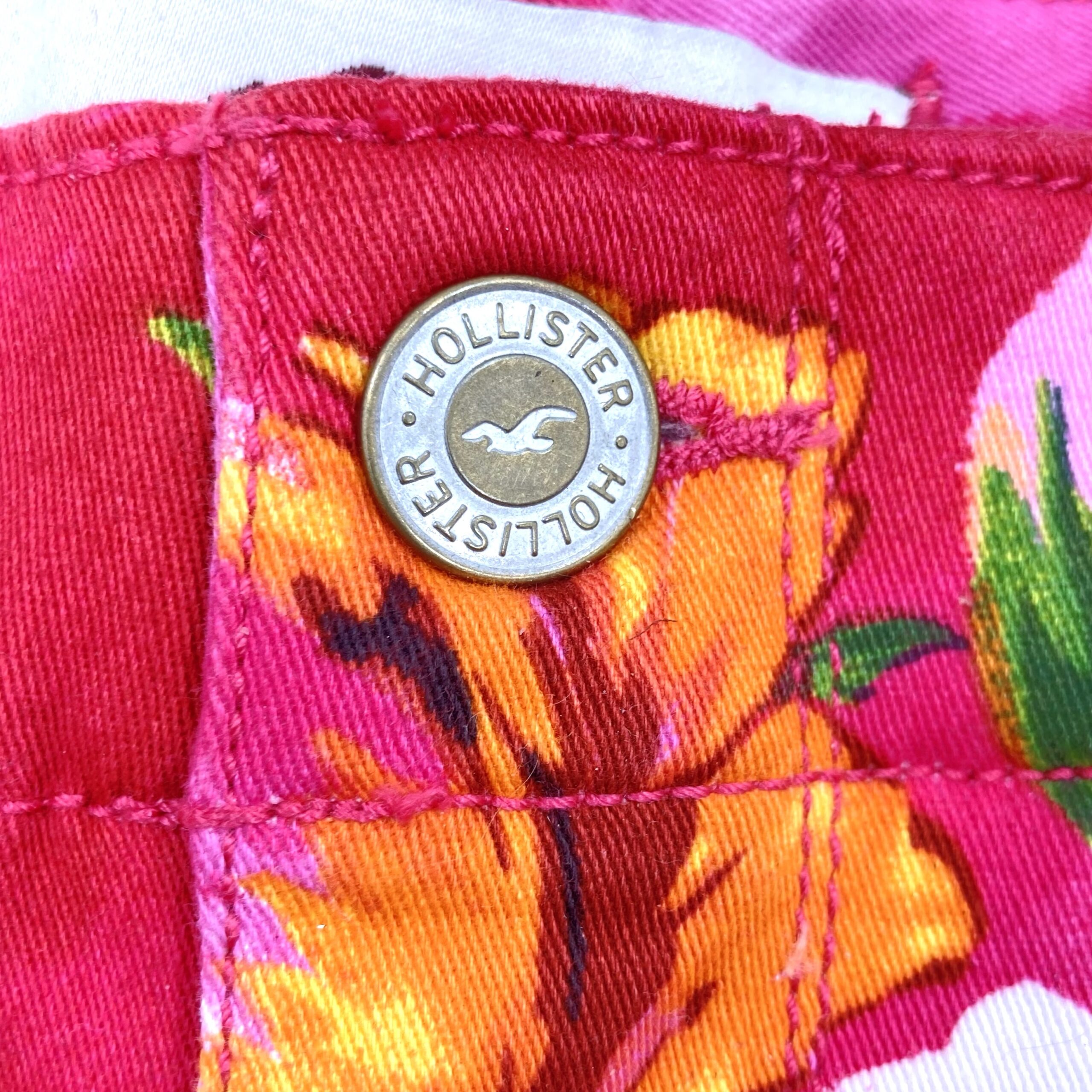 Floral print shorts by Hollister in stretch Cotton. The shorts have a bold floral print on a background of bright pink. Very eye catching. These are short shorts.
