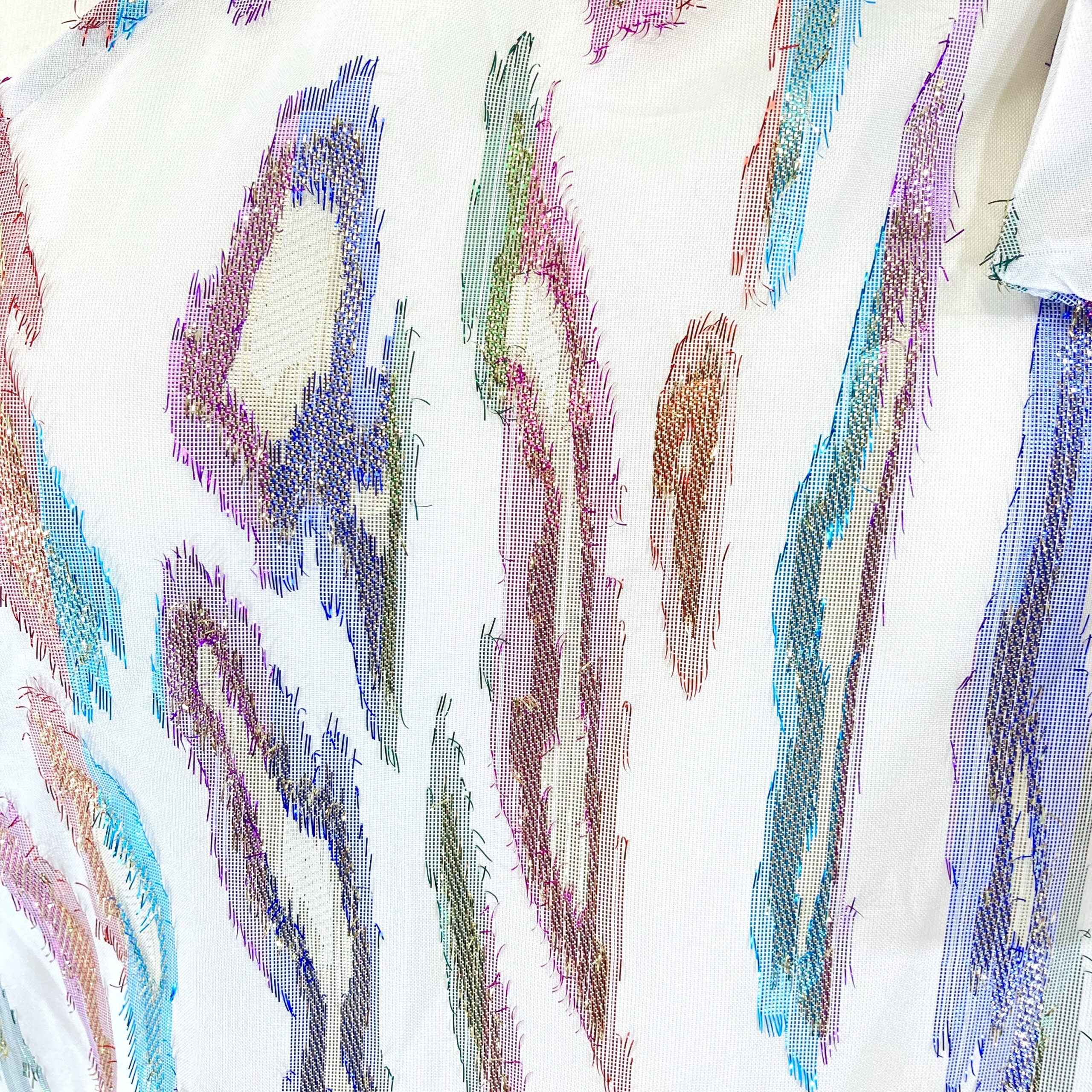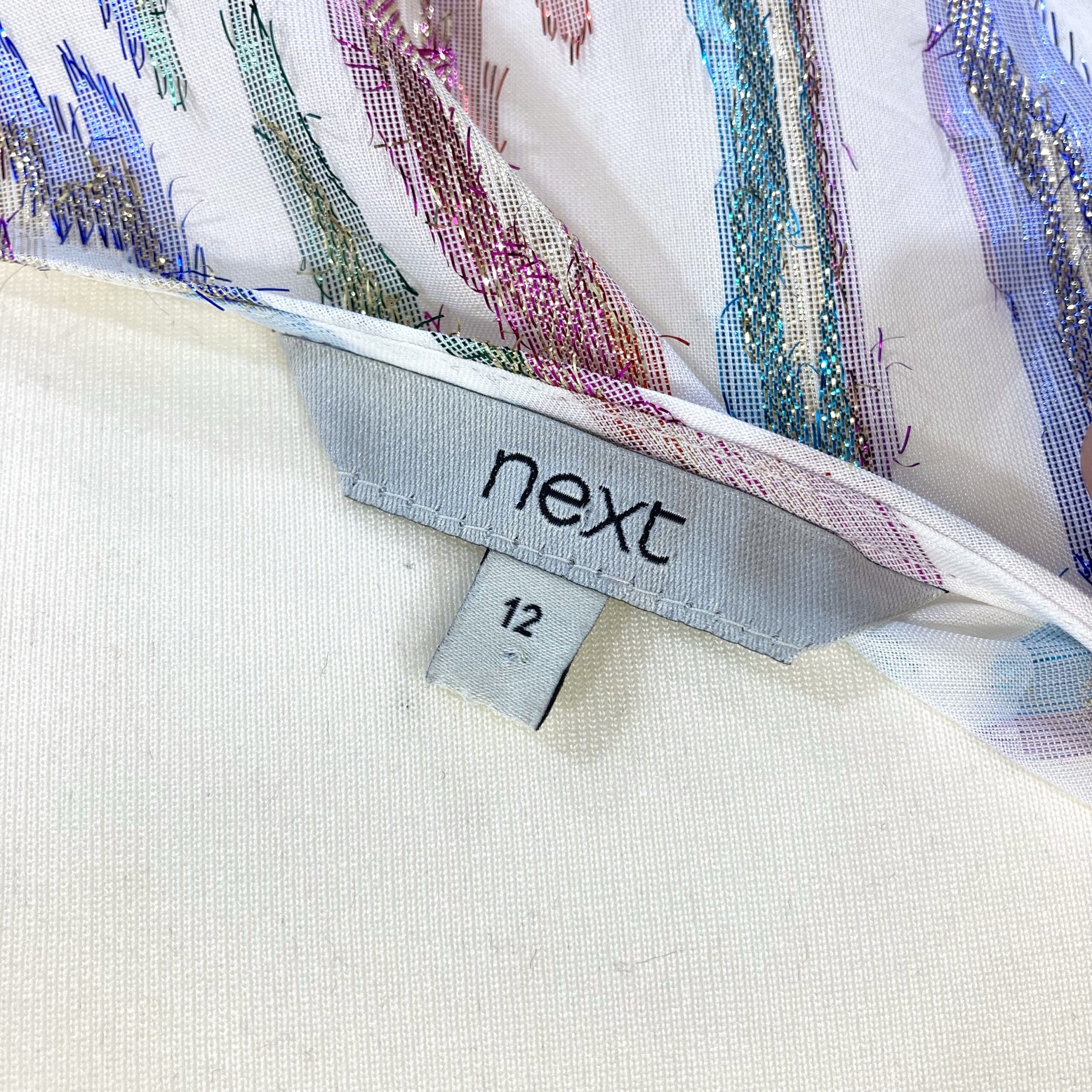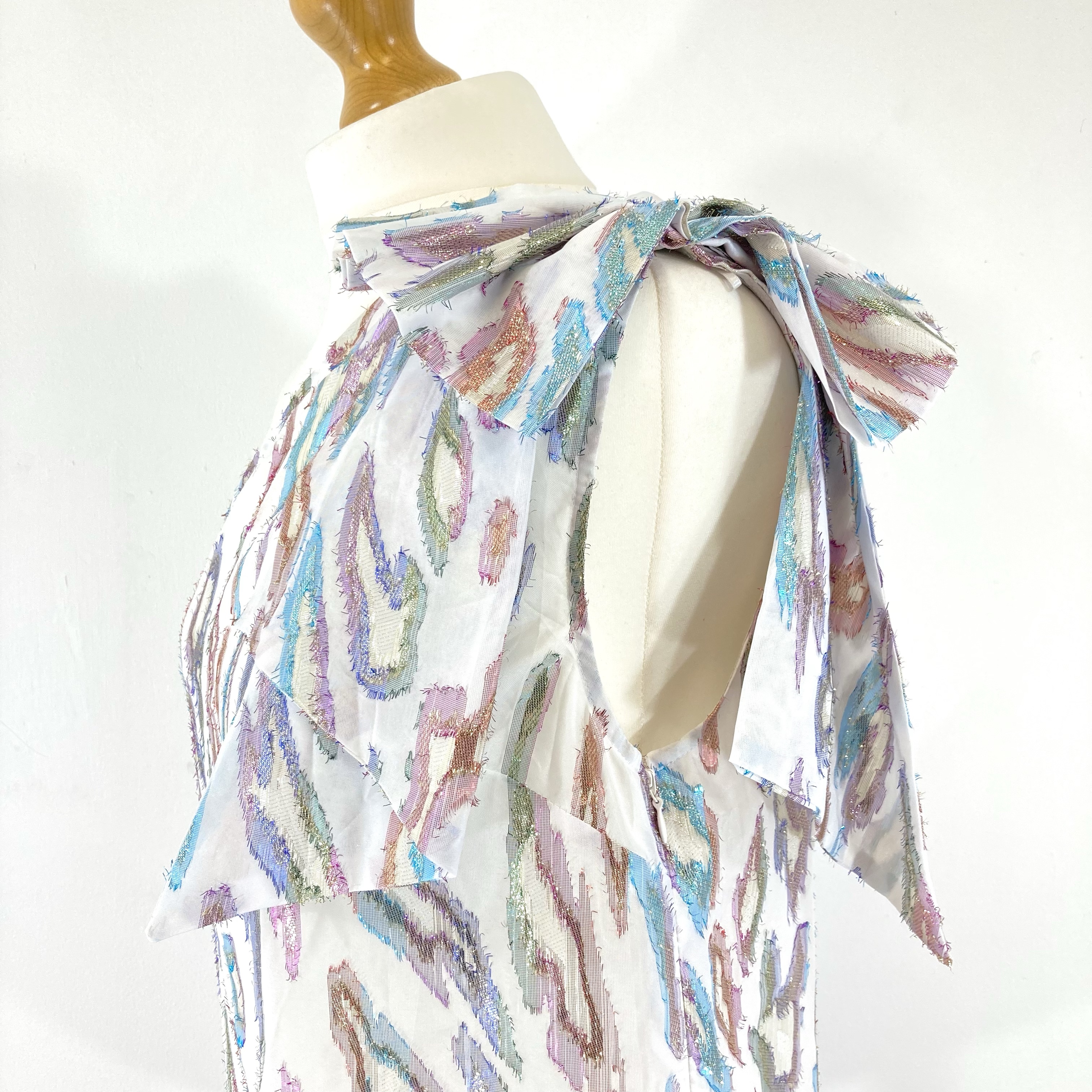 Beautiful one shoulder Top, by Next, in a lightweight White Satin Like Fabric. The Top features a one shoulder design with a large bow on the shoulder that drapes over the front and back. with a multicolour, iridescent animal print.
