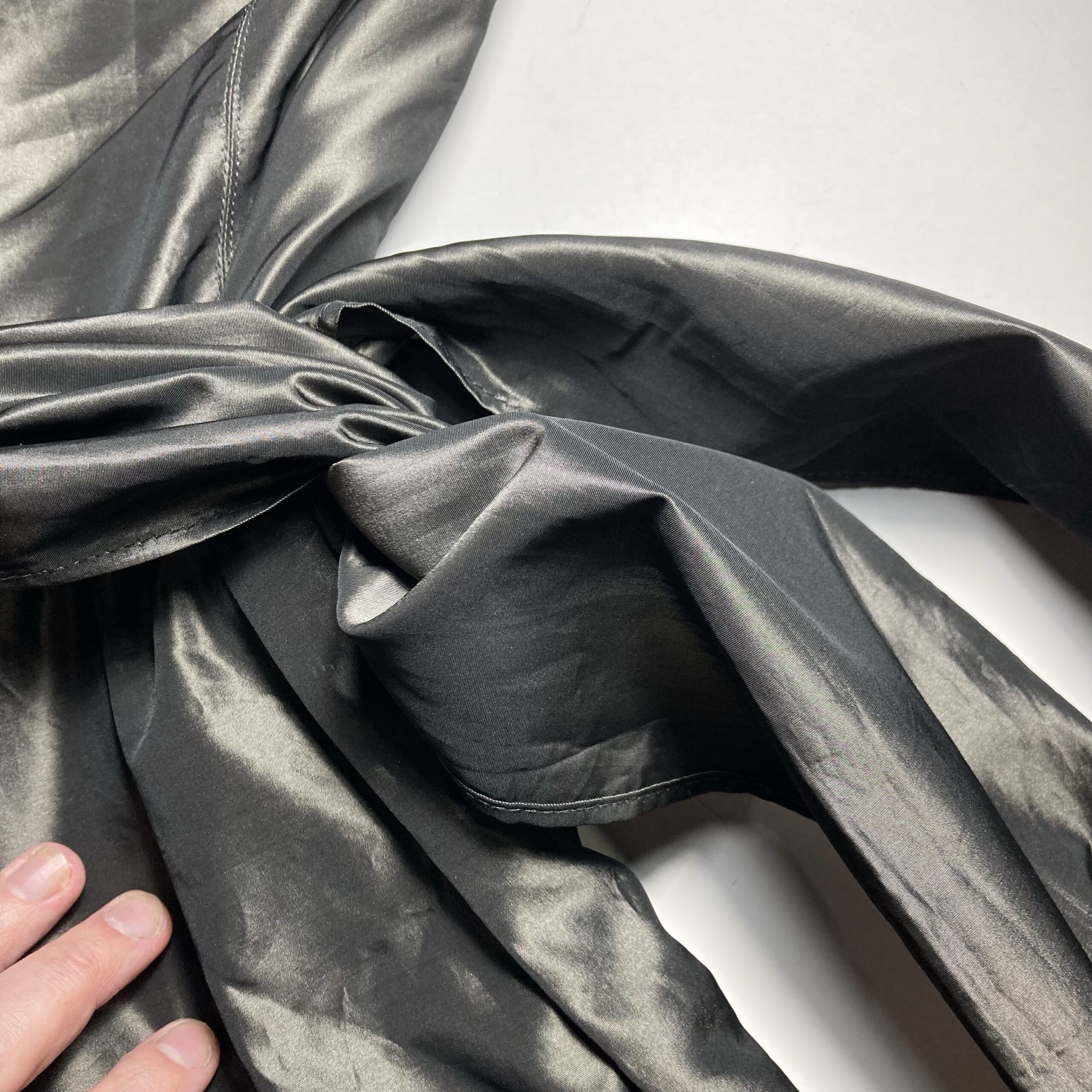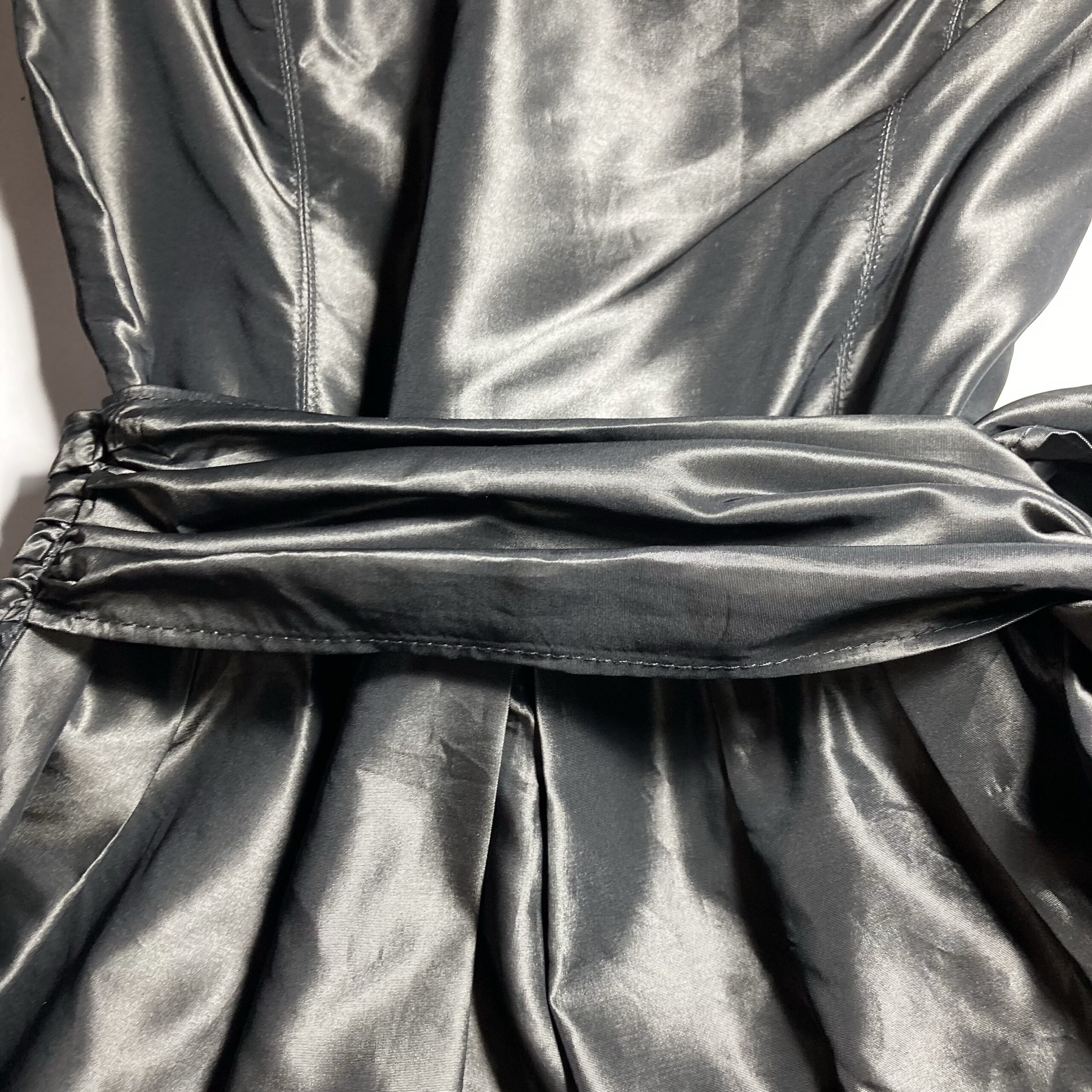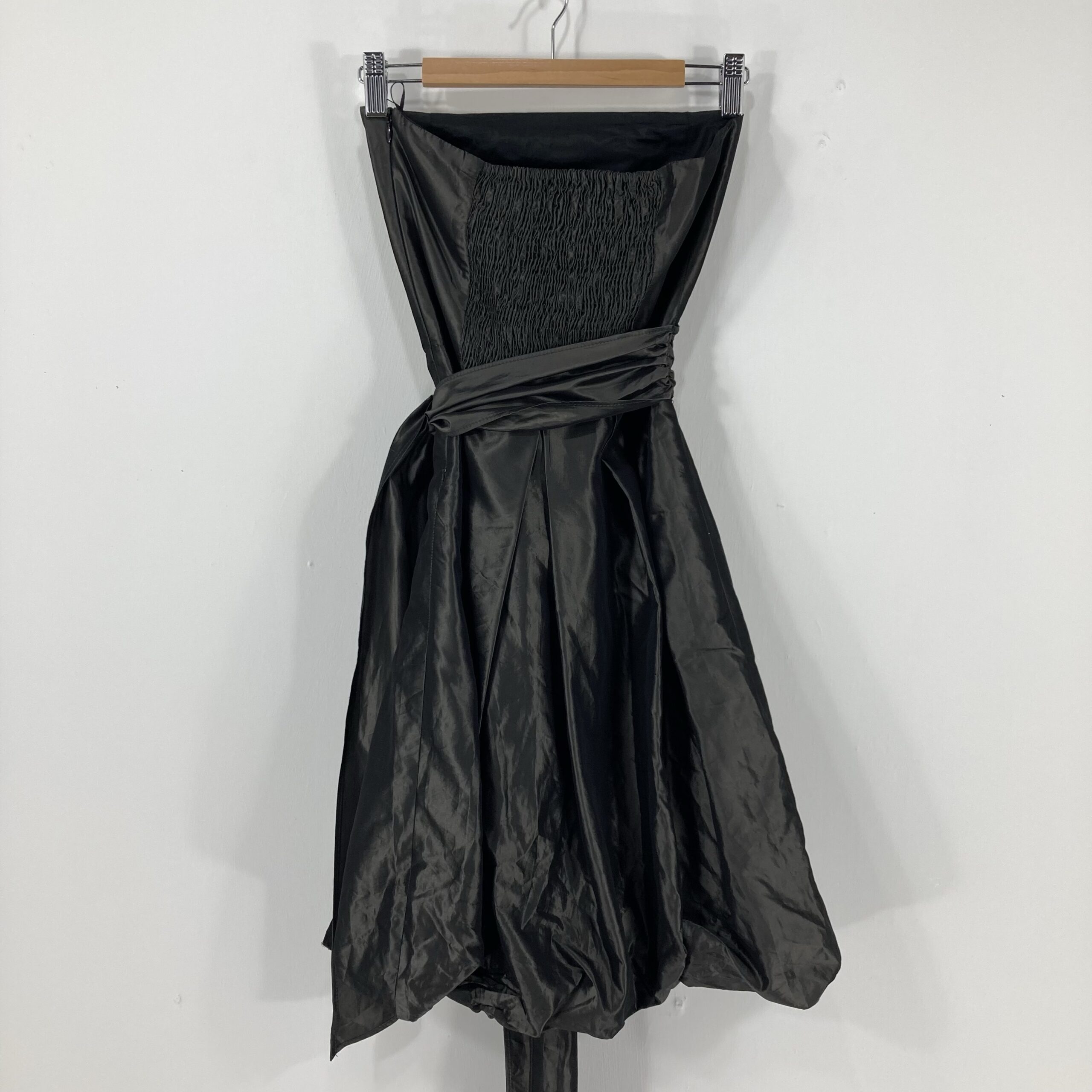 Stunning Sleeveless party dress by Zara in a shiny grey fabric. The dress features an elasticated bust and back for a comfortable fit. It also has a wide, attached, sash wait tie that add interest to the waistline.