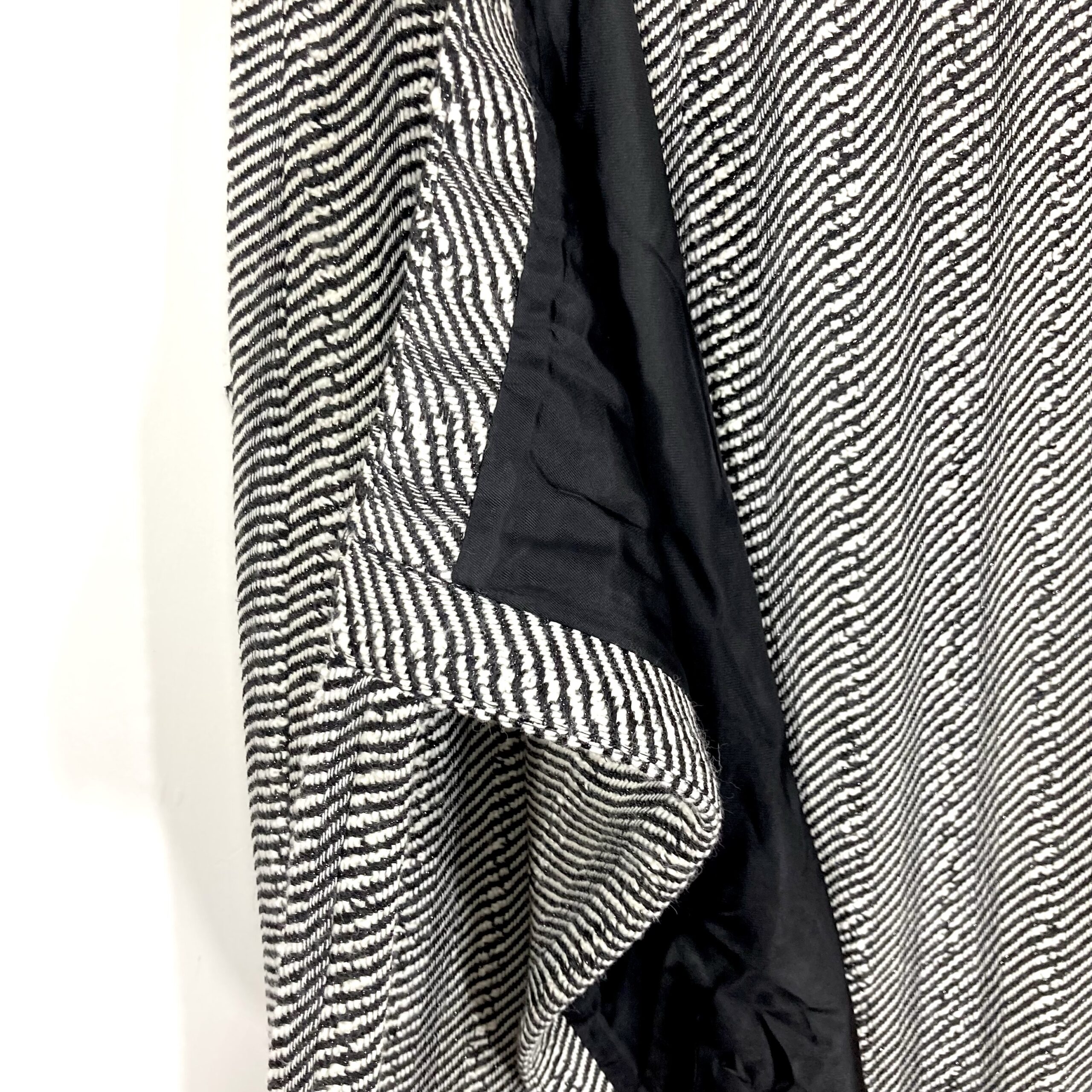 Sophisticated midi skirt by Jaeger in black and white Wool fabric. The skirt features a wrap design fastening at an slight angle on the hip to give the skirt an asymmetrical look, Fully lined,