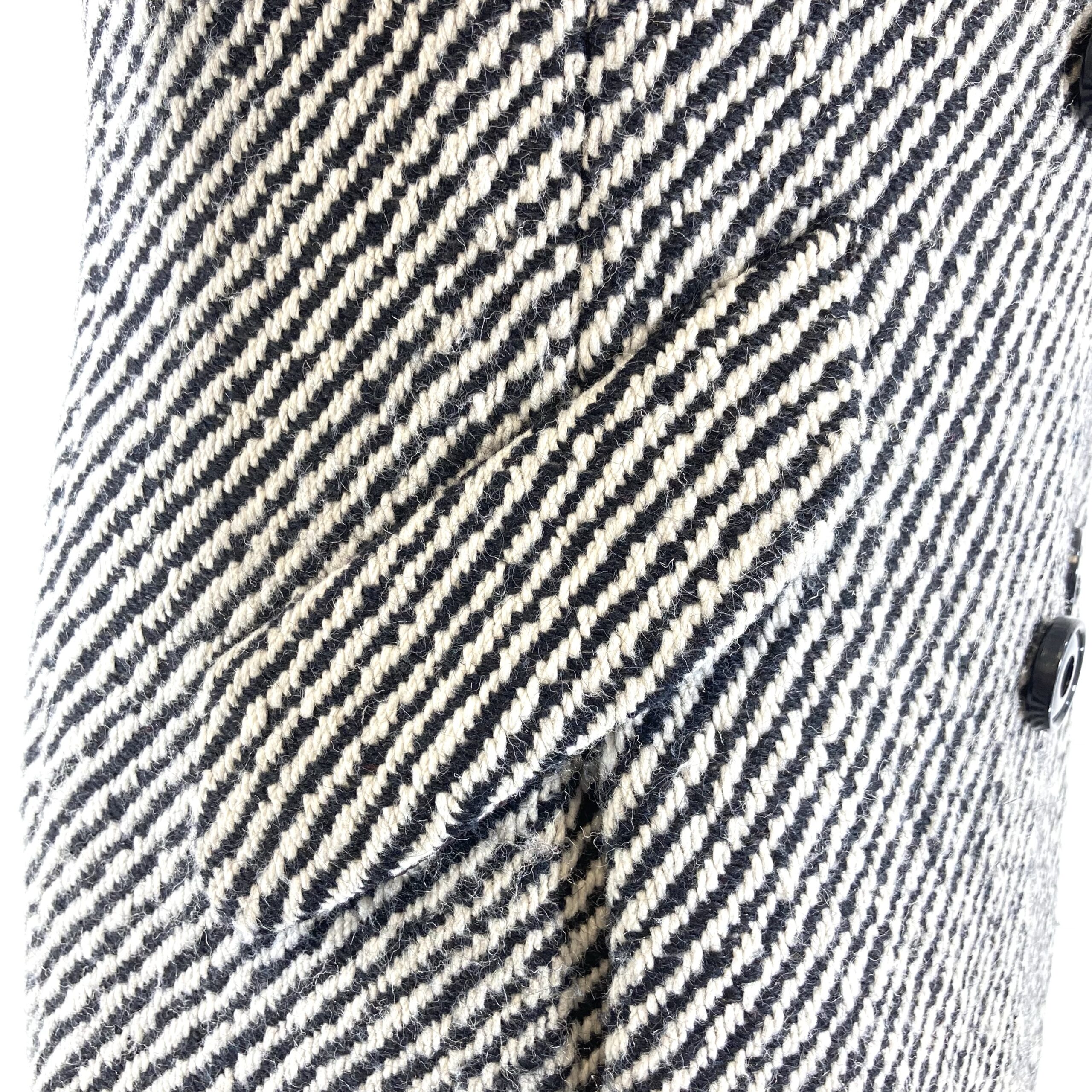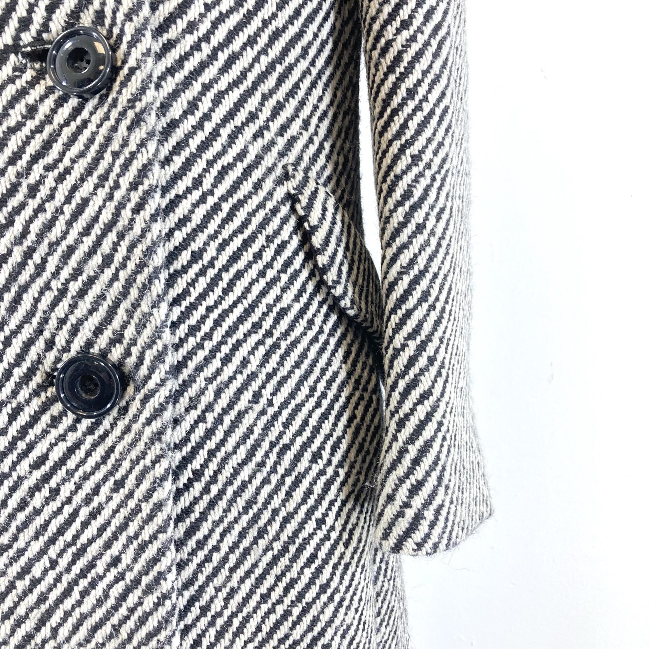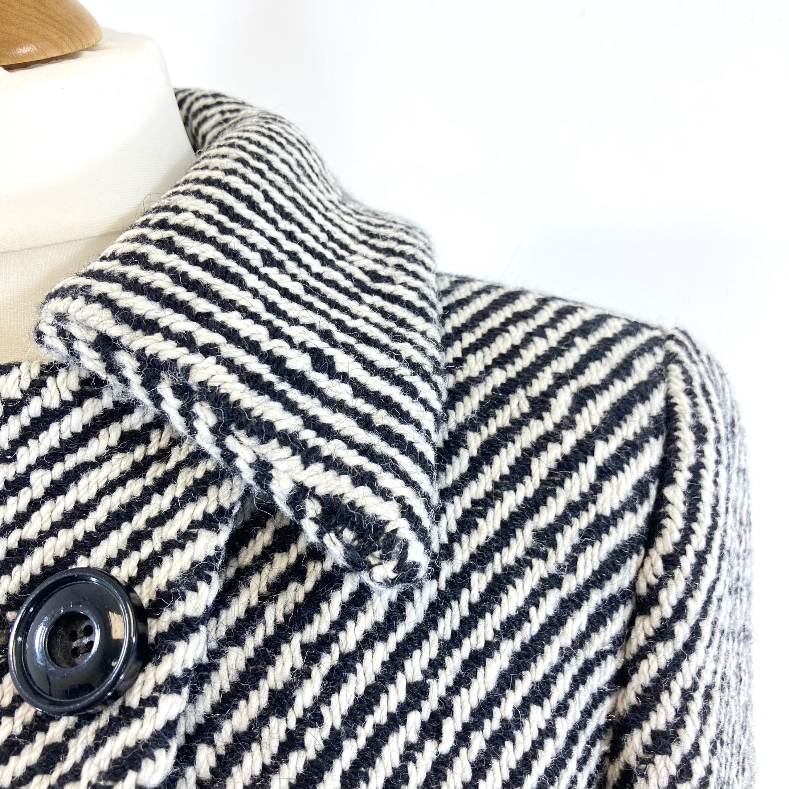 Stunning Vintage Overcoat, by Dereta, in heavyweight black and white wool. The coat features a double breasted design with large buttons. There are hidden press studs at the neck line to help maintain the line on he coat when fully buttoned. Amazing quality.